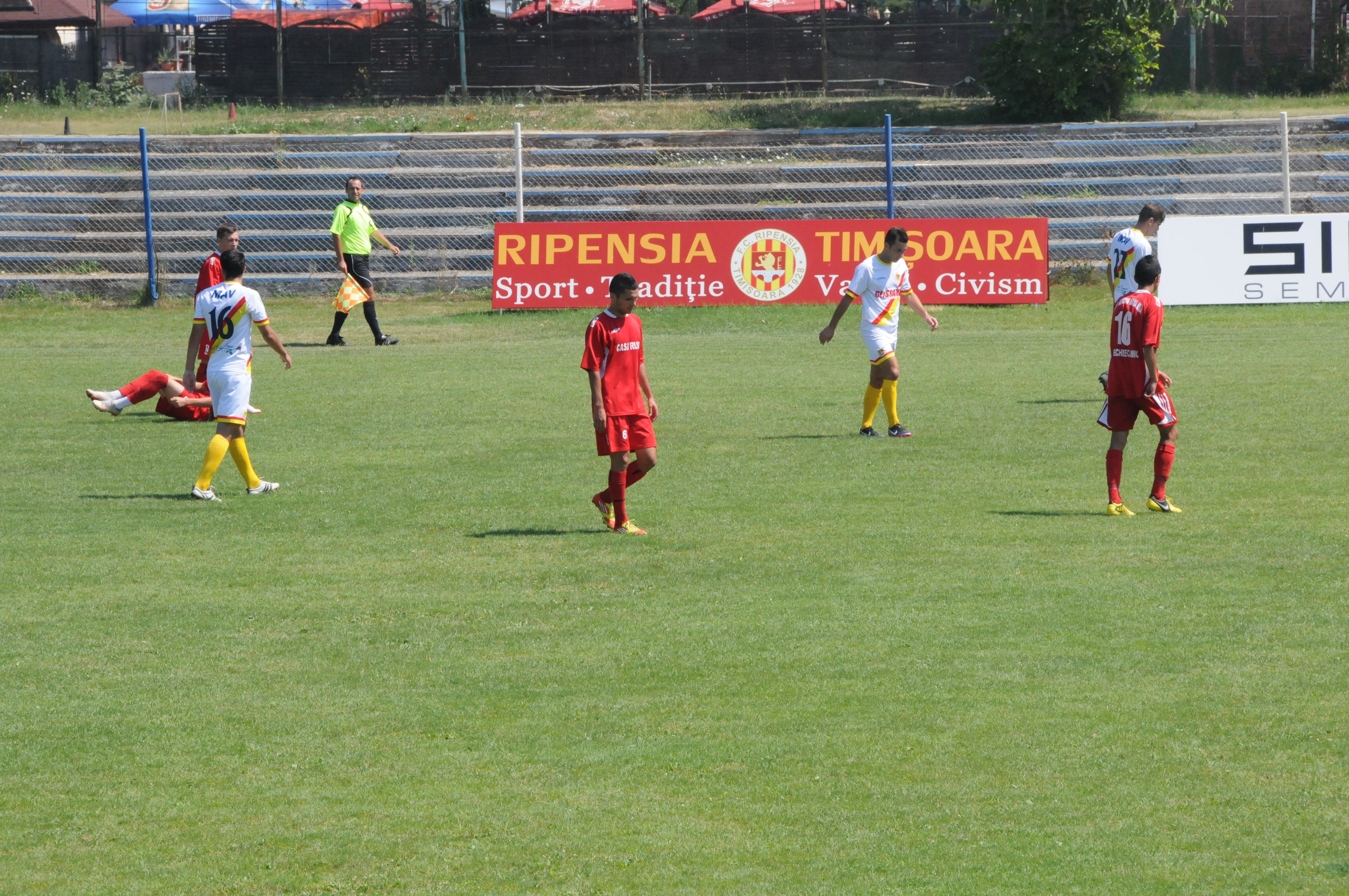 Două greșeli defensive ale galben-roșilor au făcut ca nou-promovata în eșalonul al treilea, Mama Mia Becicherecu Mic, să se impună, scor 2-1, în amicalul disputat în această dimineață pe ˝Electrica˝. Urmează meciul cu Millenium Giarmata, din turul 2 al Cupei României, care va avea loc miercuri, începând cu ora 17:30, pe arena de la Gara Mică, astfel că acest duș rece ar trebui să tragă un semnal de alarmă și să îi mobilizeze și mai mult pe băieții noștri.