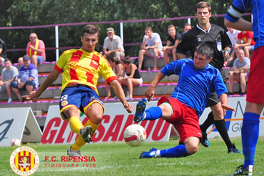 Min 15. Un sfert de oră de joc s-a scurs, cu Ripensia dominând în fața unei echipe oapsete arțăgoase.